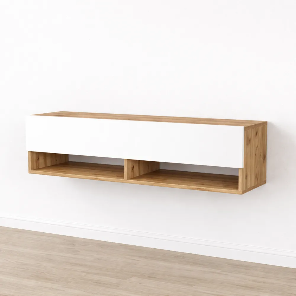 Mobile TV da Parete con Mensola e Ante a Ribalta per Soggiorno